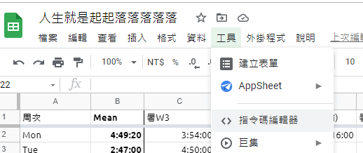 (更多google sheet繪圖功能的教學看 這篇