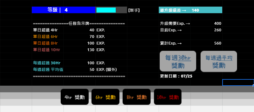 整個面板的設計只圍繞在一格:累計的EXP.